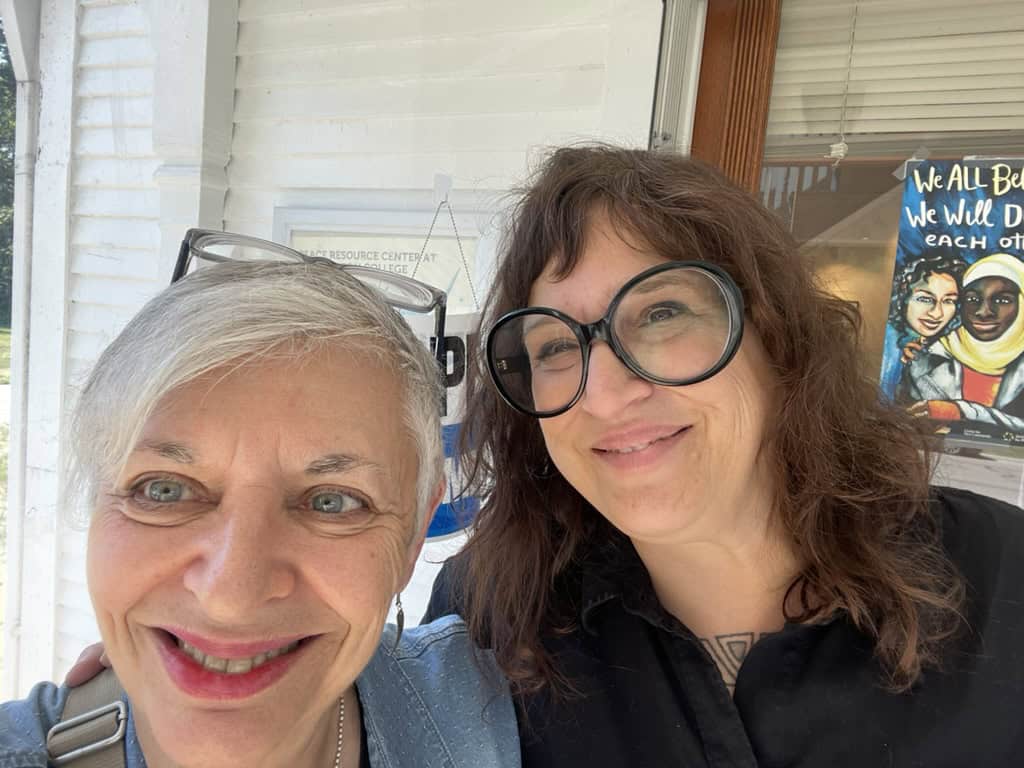 Author/Nuclear Hotseat host Libbe HaLevy (l) and Peace Resource Center Director Tanya Maus (r) in front of the PRC.