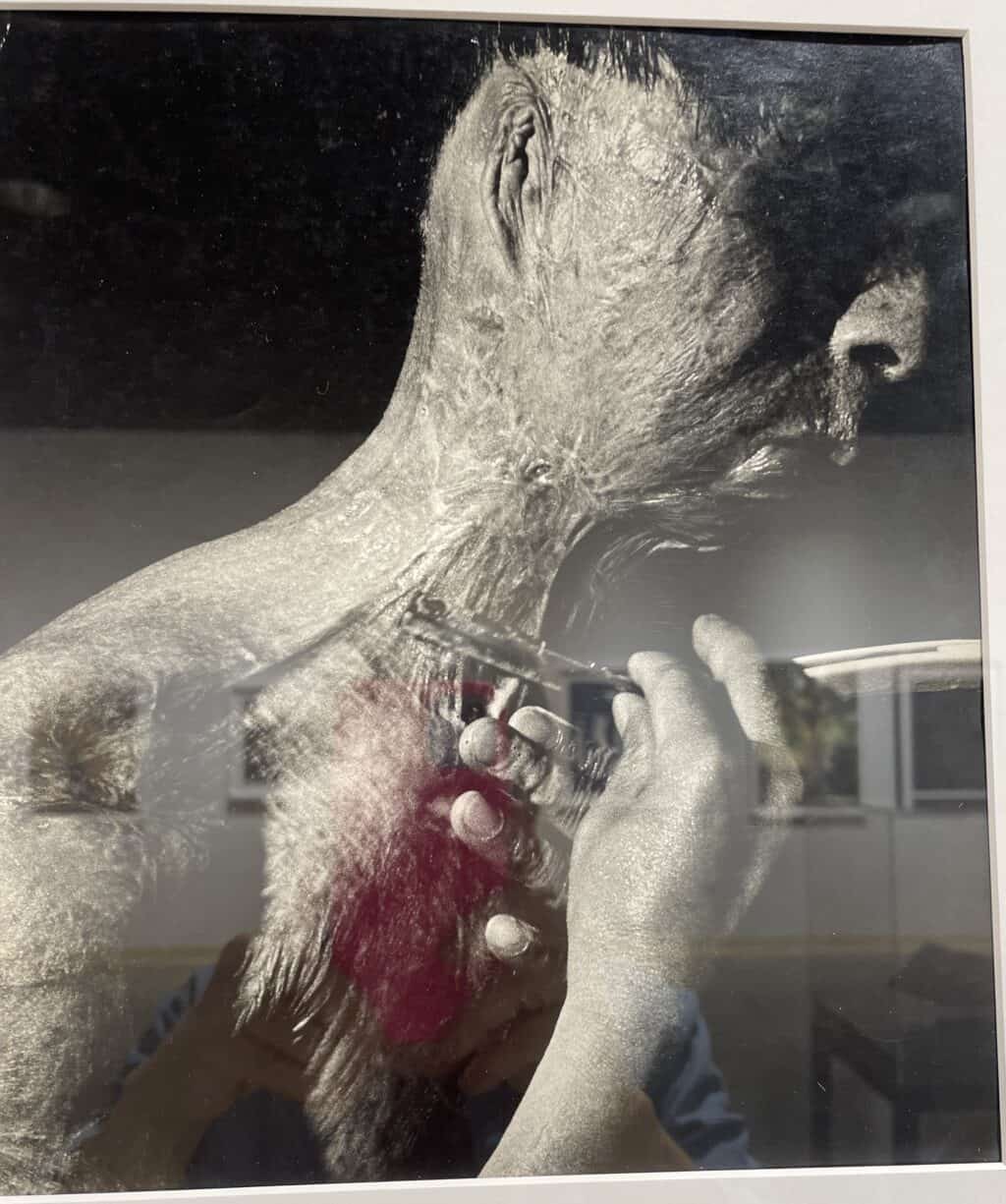 Hibakusha Yamaguchi Senjihi shaving. Original photo by Tomotsu Shohei