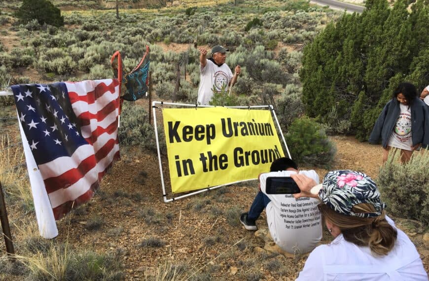 Church Rock 40th anniversary commemoration, July 16, 2019 –former Uranium Miner Larry J. King (center) explains the site of the 1979 Church Rock uranium tailings pond breach. This under-reported radioactive disaster dumped more than 94 million gallons of uranium-contaminated waste water into the adjacent Puerco River. Now 41 years later, it has yet to be … Continue reading NH #473: Church Rock Uranium Tailings Pond Breach Disaster in Navajo Nation – 40th Anniversary SPECIAL ENCORE: Elders, Activists Speak Out